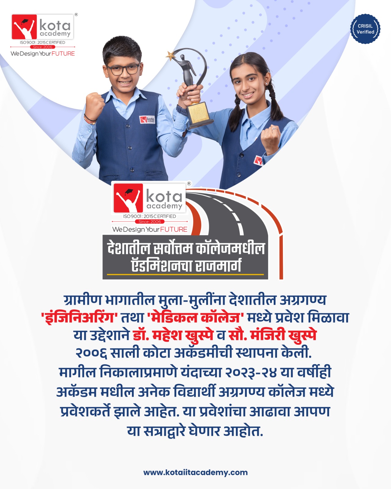The goal of the Kota Academy is to enable students to pursue higher quality education. Creating the best student is a process, through Kota Academy, not only the best education but also the student should be well-versed and he shall constantly raise his name as well as the country's name.